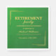 Marcando el fin de una era: es hora de celebrar la notable carrera de [Nombre] al entrar en el siguiente capítulo de su vida. Nuestras servilletas, resplandecientes en verde y oro clásicos, hacen eco del profesionalismo refinado y la dedicación inquebrantable de nuestro colega en retiro. Con opciones de personalizable, asegurémonos de que cada detalle de esta despedida refleja el estimado legado que dejan".