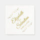 Estas hermosas servilletas harán de tu boda algo especial. Presentan un diseño sencillo y elegante con textos dorados sobre un fondo blanco con un Relieve metalizado dorado floral. Personalice fácilmente con sus nombres y la fecha del boda.