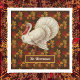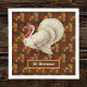 Este diseño presenta un juego de pavos blanco de Acción de Gracias contra un patrón de hojas en los colores clásicos de otoño de rojo, oro y marrón. Su nombre aparece debajo en escritura crema en un bloque de color de color autum brown. Este estilo clásico le ayudará a ofrecer un aire festivo para la cosecha de Acción de Gracias o otoño para usted y su familia o invitados.