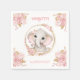 1 servilletas de cumpleaños con un chica de elefantes y flores adorables, rosas, en suaves colores rosa pastel y beige "dorado" sobre fondo blanco. Diseño bonito, bonito y elegante. Personaliza fácilmente el texto. - Kate Eden Art