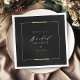 Elegante marco moderno en falso dorado con contenido de fuente de escritura y serif sobre fondo negro, simple y sofisticado. Excelentes servilletas para ducha de novia para boda clásica moderna, boda vintage de lujo y boda formal simple.
