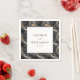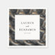 This elegant wedding napkin design features a luxurious marbled pattern in shades of black, gray, and gold, creating a dynamic and sophisticated frame. The central white square is bordered by a double line, highlighting the classic serif typography that adds a touch of timeless elegance. The minimalistic color palette within the square contrasts beautifully with the rich background, making it perfect for formal occasions. Ideal for weddings, this design combines contemporary art techniques with traditional aesthetics, offering a refined and visually appealing choice for your special day.
