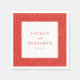 These wedding napkins feature a modern and elegant design with a vibrant red color palette, creating a sense of passion and celebration. The intricate swirling patterns in the background add depth and movement, while the central white space highlights customizable text in classic serif fonts, complemented by a cursive "and" for a personal touch. Perfect for adding sophistication to your special day, these napkins are ideal for weddings or formal events, offering both style and functionality.