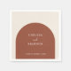 Transform your reception table setting into a cohesive, thoughtfully designed space with these elegant, minimal personalized wedding napkins. Each modern napkin features a boho terracotta arch set against a neutral beige backdrop, with the bride and groom names and wedding date elegantly printed inside using delicate life roman script typography.
