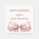 Un color de fondo blanco. Decorada con una gran proa rosa. Personalice y agregue el nombre y la fecha. Texto: ¡Feliz cumpleaños!