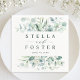Esta servilleta boda presenta eucalipto de color agua pintado, hojas botánicas verdes y azules claras.