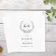 Personalice fácilmente sus servilletas bodas con este diseño editable. Presenta un diseño minimalista y elegante de tipografía en color blanco y negro con monograma personalizado rodeado por un ilustracion floral.