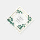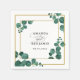 Elegantes toallas de Boda Eucalyptus con marcos geométricos y hojas de eucalipto verde. Personaliza con los nombres de pareja recién casados y la fecha.