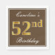 Este sencillo y elegante diseño de servilletas de papel presenta un mensaje como "52º cumpleaños de Caroline" (con el "52º" con un falso color dorado) dentro de un área cuadrada de color marrón con un simple contorno fronterizo. El nombre se encuentra en un texto similar a un script de color blanco y se puede personalizar. Las servilletas como estas podrían ser usadas en una fiesta de cumpleaños para alguien que esté celebrando su cincuenta segundo cumpleaños. [~Z0000139]