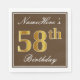 Servilleta De Papel Elegante Brown, Faux Gold 58th Birthday + Nombre