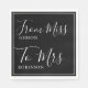 De Miss a Mrs. Paper Napkin en moderna caligrafía blanca tipografía sobre fondo negro clásico es una excelente manera de agregar un toque de elegancia a su ducha de novia. Personaliza los apellidos de las servilletas doncellas y los apellidos casados. Fácil de personalizar. ¡Descúbrelos!