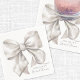 Un diseño encantador de servilleta de cóctel que presenta un gran lazo blanco de acuarela en un ángulo lindo en el centro. El nombre de la futura novia se muestra en una fuente serif clásica en la esquina inferior derecha, con "Desayuno de Novia" escrito elegantemente debajo en caligrafía manuscrita. Perfecto para un tema atemporal de “Ella está Atando el Nudo”.