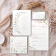 Elegante y delicado diseño de flores silvestres acuáticas con escritura moderna. Paletas pasteles de rosa suave, blanco roto, beige, azul polvoriento y vegetación botánica, sencillas y románticas. Ideal para fiestas rústicos modernos, fiesta de bodas de bodas en el huerto campestre en primavera y verano. Vea todas las piezas coincidentes de la colección.