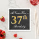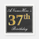 Este sencillo y elegante diseño de servilletas de papel presenta un mensaje como "ANameHere's 37th Birthday" (con el "37th" con un falso aspecto de color dorado) dentro de un área cuadrada de color negro con un simple contorno fronterizo. El nombre está en un texto similar a un guión de color blanco y se puede personalizar. Las servilletas como estas podrían ser usadas en una fiesta de cumpleaños para alguien que está celebrando su cumpleaños treinta y siete. [~Z0000136]
