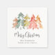 Elegantes servilletas para su fiesta de vacaciones en la oficina de su empresa con una acuarela moderna de pinos en verde salado, rojo, oro y terracota, "Feliz Navidad" en un guión elegante y su nombre de negocio en una tipografía simple.