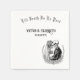 Eleva el ambiente de la mesa gótica boda con estas elegantes y macabras servilletas. Estas llamativas servilletas blancas y negras presentan un ilustracion bellamente detallado de un novio y novia esquelético, enmarcado por una corona de rosas. Cortar el diseño es la promesa atemporal, 'Hasta la muerte, parte de nosotros', que establece un tono de eterno romance. Perfecto para una celebración gótica, alternativa o temática de Halloween, son un detalle memorable para tu recepción. Personalízalos con tus nombres y la fecha del boda debajo del diseño para crear un conservador único para tu día especial.