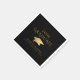Elegante Graduado Black Faux Relieve metalizado dorado Cap Napkins Papeles de papel. Elegantes servilletas de fiesta de graduación de color personalizado con un falso tapón metálico de graduación de Relieve metalizado de oro y una elegante tipografía caligráfica en su elección de colores que se pueden cambiar a colores escolares o colores temáticos fiestas. OPCIONES DE NAPKIN: El ejemplo se muestra en el tamaño de cóctel de 4.75 pulgadas en blanco; en la página de pedidos hay disponibles otros tamaños y colores de papel de servilleta. ASISTENCIA: Para obtener ayuda con la modificación o personalización del diseño, el cambio de color, la transferencia del diseño a otro producto o si desea coordinar elementos, póngase en contacto con el diseñador ANTES DE PEDIDOS a través de la pestaña MENSAJE de charla de Zazzle o envíe un correo electrónico a makeitaboutyoustore@gmail.com.