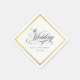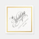 Una servilleta de bodas muy elegante que incluye acentos de texto con guión de caligrafía con un amplio borde dorado que rodea tu texto. El estilo, sencillo y de buen gusto, funciona muy bien para los bodas en cualquier temporada.