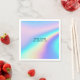 Servilletas elegantes holográficas personalizadas con un diseño de plantilla moderno y minimalista con fuente sans-serif negra simple sobre fondo de neón iridiscente colorido, personalizable en cualquier color.