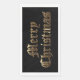 Viejo inglés Lettering Merry Christmas Gift, Napkins Fiesta de Navidades Negros y Oro, con Faux Gold Old English Typography sobre el fondo negro.