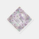 Esta es una servilleta de personalizable para bebés que captura la alegría y la anticipación de una nueva llegada. La servilleta está decorada con un estilo floral exuberante que cubre todo el fondo, con detalles intrincados y colores suaves como el violeta, el azul y el verde. Este diseño intrincado exuda una sensación de elegancia y sofisticación, manteniendo al mismo tiempo un tono cálido y festivo. En el centro de la servilleta, la frase "Baby in Bloom" se exhibe de forma destacada en letras violetas y negritas, añadiendo un toque de capricho y alegría al diseño. Esta frase no sólo anuncia la alegre ocasión sino que también se vincula perfectamente con el tema floral. Debajo de esta frase, hay espacio para el texto personalizado. Esta opción hace de cada servilleta un toque único y apreciado para los clientes, sirviendo como un hermoso recordatorio de este día especial.
