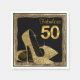 Elegante zapato de tacón alto negro y purpurina de oro mujeres 50 servilletas de papel de cumpleaños. Estas hermosas toallas de tacón alto de oro de 50 cumpleaños se personalizan fácilmente añadiendo texto en el estilo de letra de su elección.