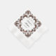 Marco cuadrado de diseño complejo con motivos ornamentales. El marco es simétrico, con un motivo floral central rodeado de complejos remolinos y rizos. La paleta de colores es blanca y dorada, con acentos dorados que resaltan el motivo central y el blanco que contrasta. El marco parece ser tridimensional, con profundidad y textura evidente en la artesanía.