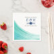 Estas servilletas son perfectas para cualquier pareja que planee un matrimonio romántico junto al mar. El diseño se basa en una ola acuática pintada a mano en tonos turquesa, azul y verde sobre un fondo blanco limpio y los colores de la redacción contrastan con el azul marino y el gris. El diseño sencillo puede ser personalizado para su evento especial y será el accesorio perfecto para cualquier fiesta con temática playera, incluyendo duchas de novias, compromisos, duchas de bodas, fiestas de cumpleaños y mucho, mucho más.