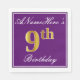 Este sencillo y elegante diseño de servilletas de papel presenta un mensaje como "ANameHere's 9th Birthday" (con el "9th" con un falso color dorado) dentro de un área cuadrada de color púrpura con un simple contorno fronterizo. El nombre está en un texto similar a un guión de color blanco y se puede personalizar. Las servilletas como estas podrían ser usadas en una fiesta de cumpleaños para alguien que está celebrando su noveno cumpleaños. [~Z0000140]