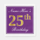 Este sencillo y elegante diseño de servilletas de papel presenta un mensaje como "Nombre: 25 cumpleaños" (el "25" tiene un falso color dorado) dentro de un área cuadrada de color púrpura con un simple contorno fronterizo. El nombre está en un texto similar a un guión de color blanco y se puede personalizar. Las servilletas como estas podrían ser usadas en una fiesta de cumpleaños para alguien que está celebrando su 25º cumpleaños. [~Z0000140]
