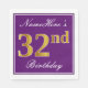 Este sencillo y elegante diseño de servilletas de papel presenta un mensaje como "NameHere's 32nd Birthday" (con el "32nd" con un falso aspecto de color dorado) dentro de un área cuadrada de color púrpura con un simple contorno fronterizo. El nombre se encuentra en un texto similar a un script de color blanco y se puede personalizar. Las servilletas como estas podrían ser usadas en una fiesta de cumpleaños para alguien que esté celebrando su 32 cumpleaños. [~Z0000140]