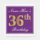 Servilleta De Papel Elegante púrpura, Faux Gold 36 cumpleaños + nombre