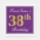 Este sencillo y elegante diseño de servilletas de papel presenta un mensaje como "Cumpleaños 38 de FirstName" (con el "38" con un falso aspecto de color dorado) dentro de un área cuadrada de color púrpura con un simple contorno fronterizo. El nombre está en un texto similar a un guión de color blanco y se puede personalizar. Las servilletas como estas podrían ser usadas en una fiesta de cumpleaños para alguien que está celebrando su cumpleaños treinta y ocho. [~Z0000140]