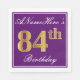 Este sencillo y elegante diseño de servilletas de papel presenta un mensaje como "ANameHere's 84th Birthday" (con el "84th" con un falso color dorado) dentro de un área cuadrada de color púrpura con un simple contorno fronterizo. El nombre se encuentra en un texto similar a un script de color blanco y se puede personalizar. Las servilletas como estas podrían ser usadas en una fiesta de cumpleaños para alguien que está celebrando su cumpleaños número ochenta y cuatro. [~Z0000140]