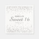 Dulces servilletas de papel de 16 cumpleaños en blanco con purpurina plateado y un elegante tipo de letra caligrafía / guión. El fondo y el color de texto de estas servilletas son completamente personalizables, así que diseñen para su celebración.