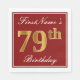 Este sencillo y elegante diseño de servilletas de papel presenta un mensaje como "Cumpleaños 79 de FirstName" (con el "79" que tiene un falso color dorado) dentro de un área cuadrada de color rojo con un simple contorno fronterizo. El nombre está en un texto similar a un guión de color blanco y se puede personalizar. Las servilletas como estas podrían ser usadas en una fiesta de cumpleaños para alguien que está celebrando su cumpleaños número setenta y nueve. [~Z0000138]