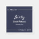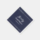 Esta elegante servilleta azul marino y blanca es perfecta para un cumpleaños moderno. el diseño es sencillo y elegante, con una caligrafía blanca sobre un fondo azul marino.