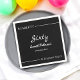 Esta elegante servilleta en blanco y negro es perfecta para un cumpleaños moderno. el diseño es sencillo, con una caligrafía en blanco sobre un fondo negro.