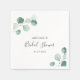 Servilleta elegante para despedida de soltera con un diseño simple que presenta vegetación de eucalipto pintada con acuarela en verde salvia en la esquina superior izquierda y la esquina inferior derecha junto con el nombre de la novia y la fecha del evento. Estas servilletas rústicas botánicas para despedida de soltera con un toque moderno son perfectas para una celebración de primavera o verano.
