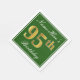 Este sencillo y elegante diseño de servilletas de papel presenta un mensaje como "Nombre: Acá es el cumpleaños 95" (con el "95" con un falso color dorado) dentro de un área cuadrada de color verde con un simple contorno fronterizo. El nombre está en un texto similar a un guión de color blanco y se puede personalizar. Las servilletas como estas podrían ser usadas en una fiesta de cumpleaños para alguien que está celebrando su cumpleaños noventa y cinco. [~Z0000137]