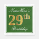 Servilleta De Papel Elegante Verde, Faux Gold 29th Birthday + Nombre