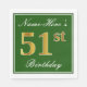 Servilleta De Papel Elegante Verde, Faux Gold 51st Birthday + Nombre