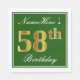 Servilleta De Papel Elegante Verde, Faux Gold 58th Birthday + Nombre