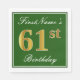 Servilleta De Papel Elegante Verde, Faux Gold 61st Birthday + Nombre