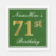 Servilleta De Papel Elegante Verde, Faux Gold 71st Birthday + Nombre