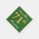 Este sencillo y elegante diseño de servilletas de papel presenta un mensaje como "NombreAquí es el 71º cumpleaños" (con el "71º" con un falso color dorado) dentro de un área cuadrada de color verde con un simple contorno fronterizo. El nombre está en un texto similar a un guión de color blanco y se puede personalizar. Las servilletas como estas podrían ser usadas en una fiesta de cumpleaños para alguien que está celebrando su cumpleaños número setenta. [~Z0000137]