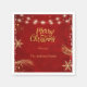 Navidades de copos de nieve fiesta de fiesta de fiesta de vacaciones servilletas rojas y doradas con copos de nieve y luces de cuerda en un vibrante fondo rojo. Coloca tu propio apellido o el de otra persona o borra el texto si quieres un diseño más sencillo. Elementos coincidentes en mi tienda UnuqieDesigns.