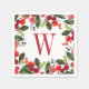 El diseño de la servilleta de vacaciones incluye un hermoso diseño de la corona de color de agua follaje Navidad con hojas verdes y bayas rojas enmarcan su rico monograma rojo inicial / letra.