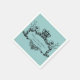 Las servilletas desechables de papel son perfectas para la recepción de bodas, la ducha de la pareja o la cena de ensayo. Están decoradas con un diseño regular de rollos, hojas y corona real con un espacio donde se pueden añadir los nombres de la novia y del novio y la fecha del boda, todo con un fondo azul.
