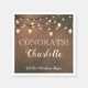 Elegantes servilletas fiestas de retiro sorpresa de color café marrón, con brillantes luces de cuerdas y una combinación de escritura y tipografía de cara abierta en un fondo oscuro oscuro que se gradúan del azul claro en el centro al azul oscuro en los bordes exteriores para un suave efecto atmosférico. Perfecto para la celebración de la jubilación de hombres o mujeres.